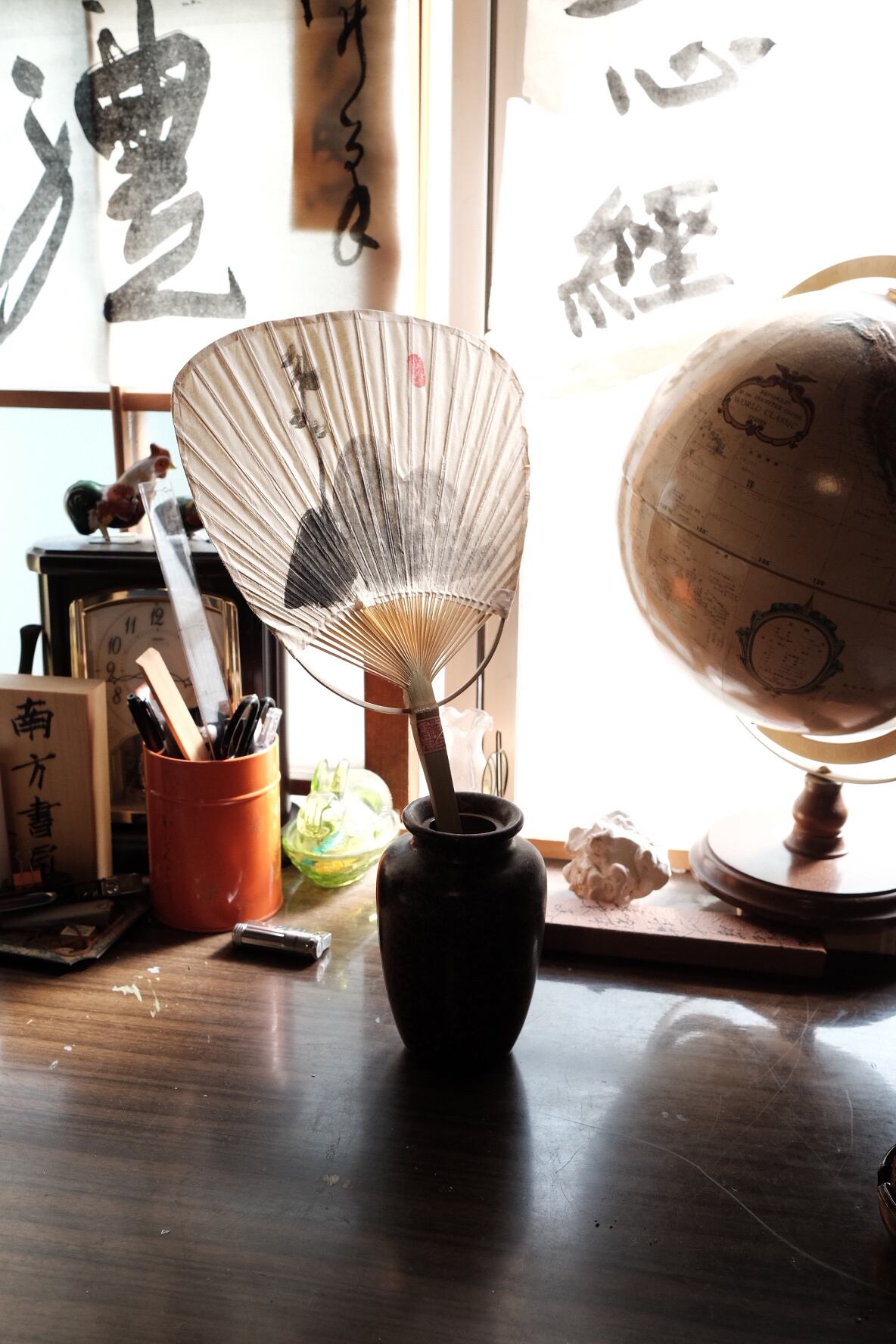 南方書局の代表、富澤大輔による肉筆の山水画が描かれた団扇です。