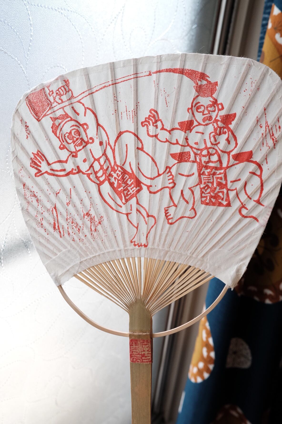 中国・蘇州で買い付けた伝統技法で漉かれた紙に木版で絵柄を刷り、竹骨に一枚一枚手貼りした特製の手作り団扇です。