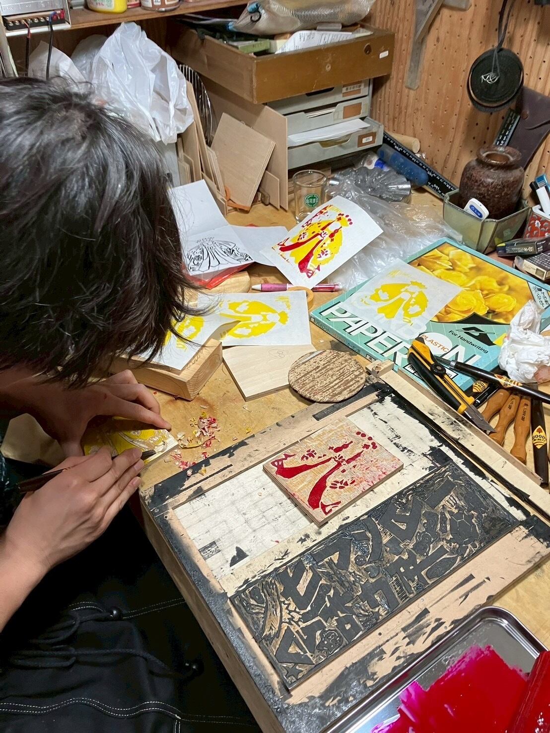絵柄の制作、木版の彫りからすべて局員の手で行いました。